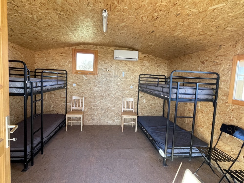 - szigetelt 16 m2 faház, 4 ággyal, asztallal, székekkel, hűtőszekrénnyel,mikróval, vízforralóval, klímával, 12m2 fedett teraszán asztallal, padokkal;