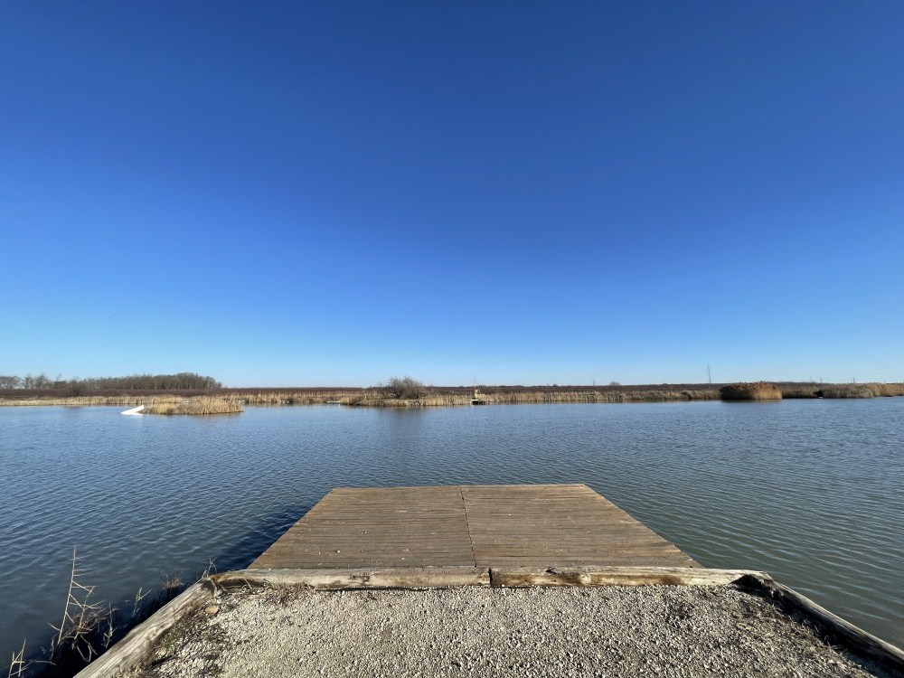 -- a tó déli oldalán lévő horgászhely, behajtás a 2 számú kapunál;