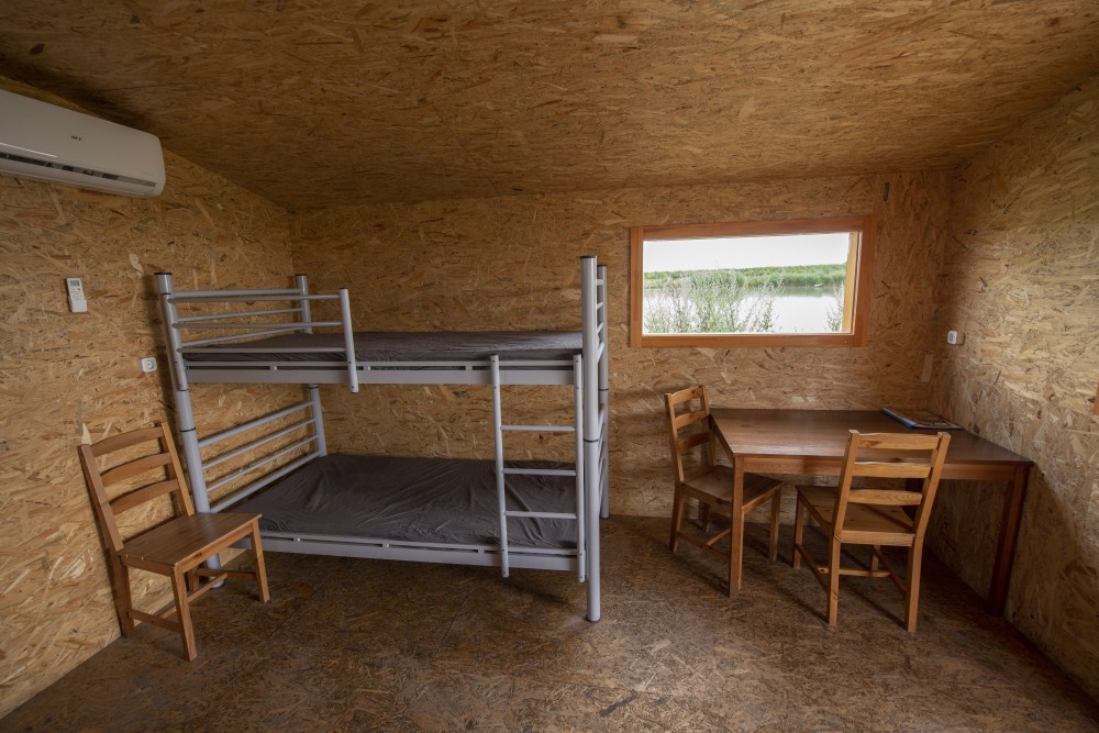 - szigetelt , 16 m2 –es faház, 4 ággyal, asztallal, székekkel, hűtőszekrénnyel, mikróval, vízforralóval, klímával, 12m2-es fedett teraszán asztallal, padokkal;